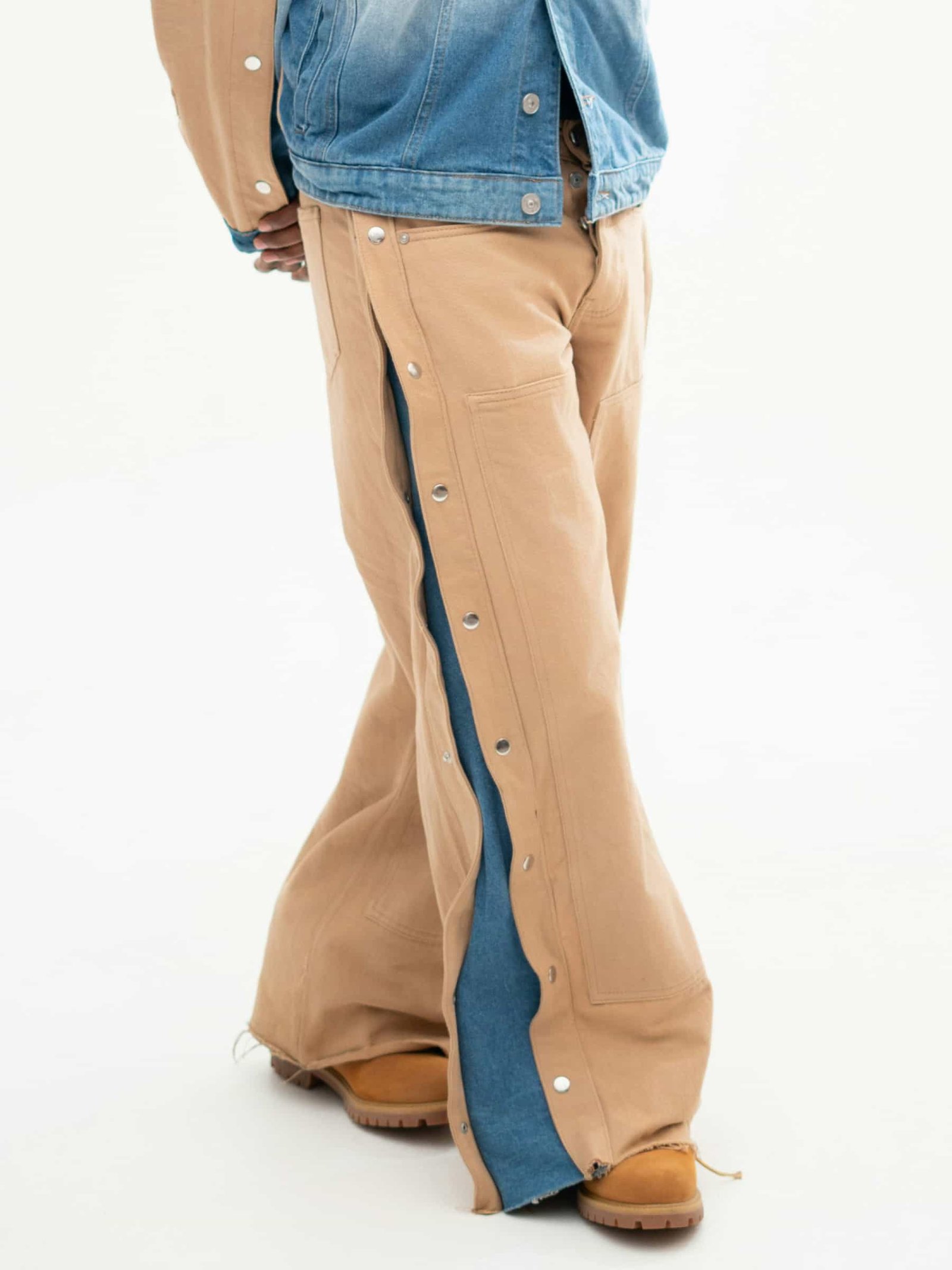 Side rivet wide denim pants