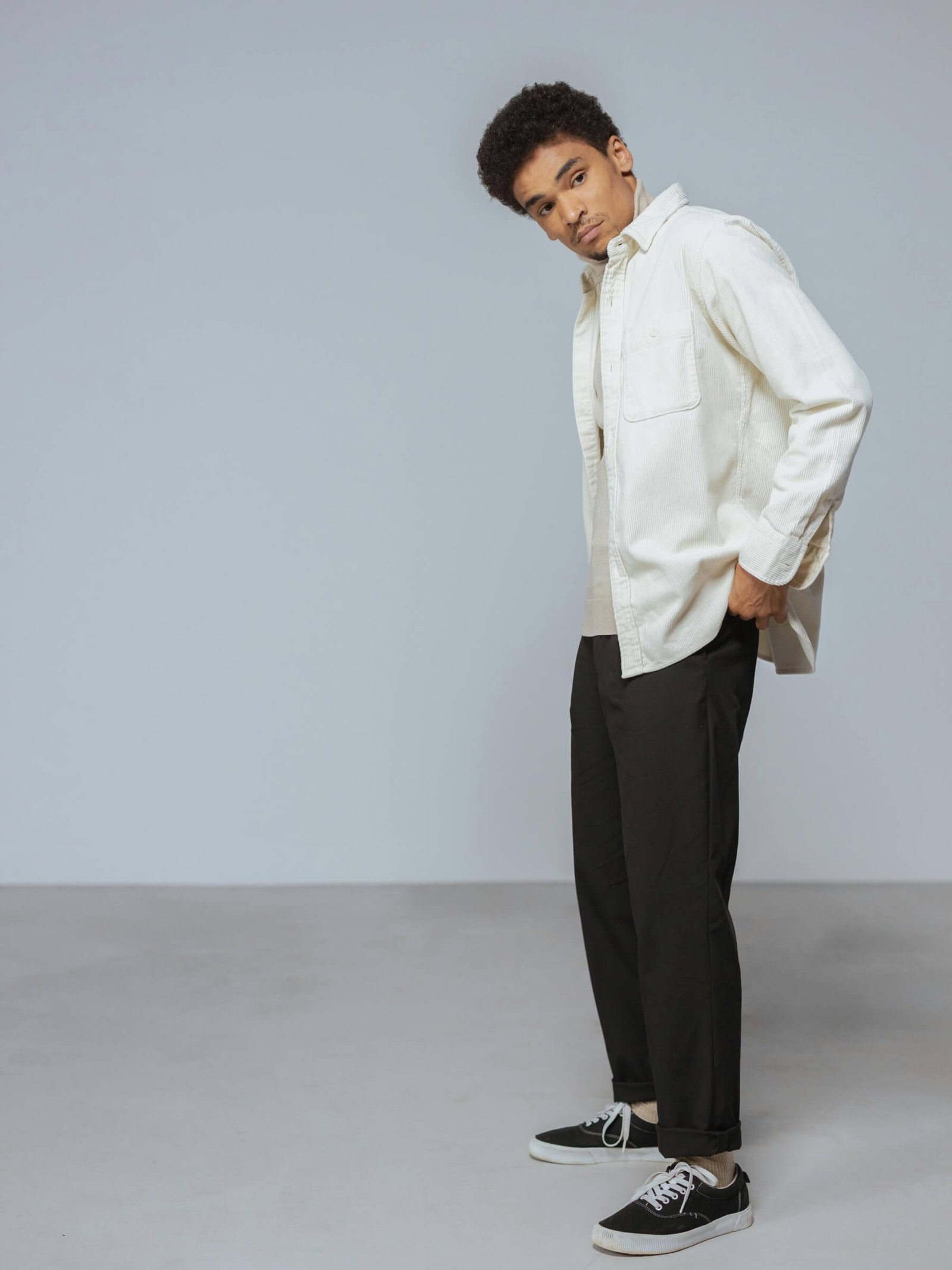 Long sleeves with buttoned cuffs. classic Collar. Concealed front button fastening.