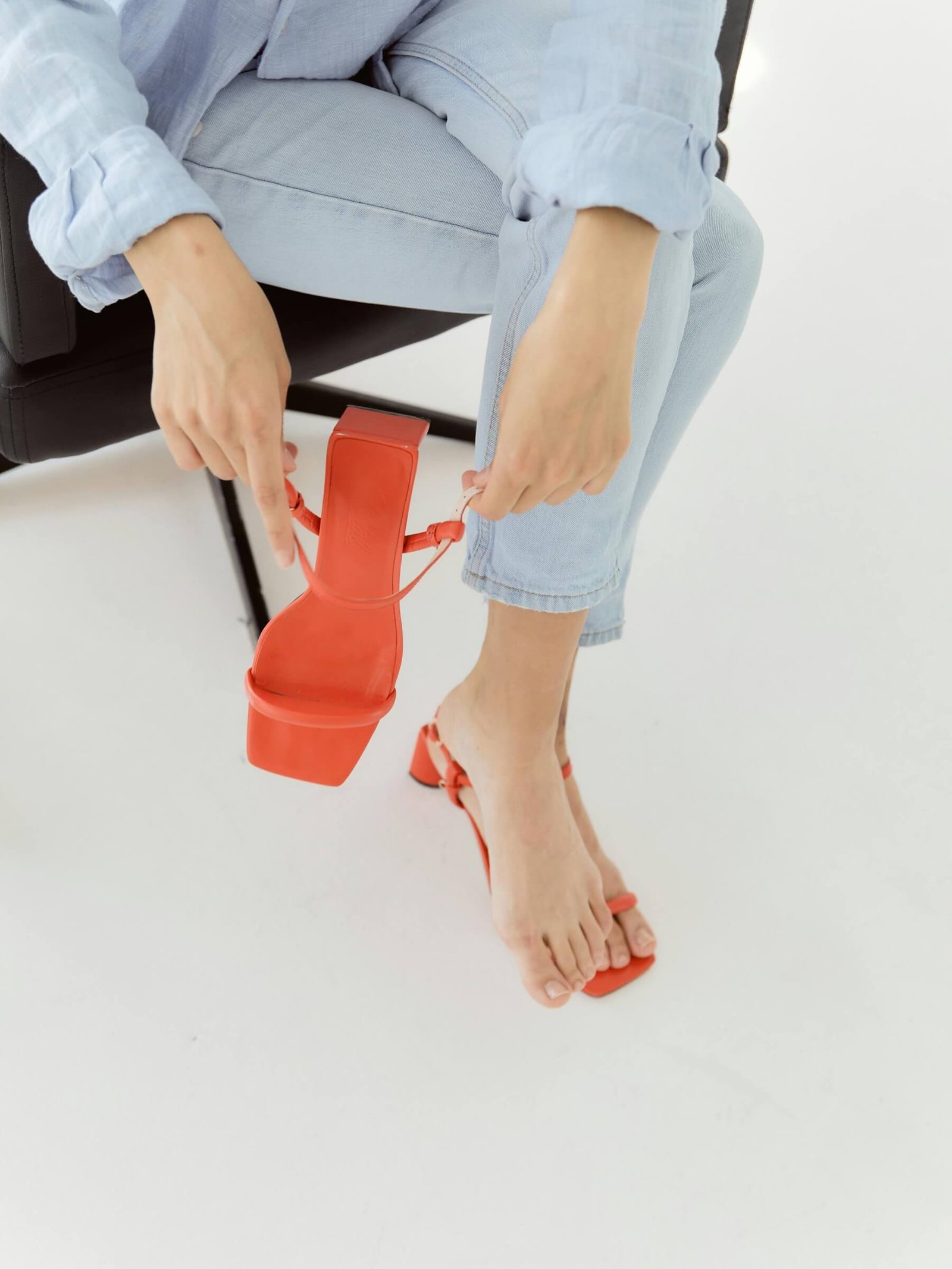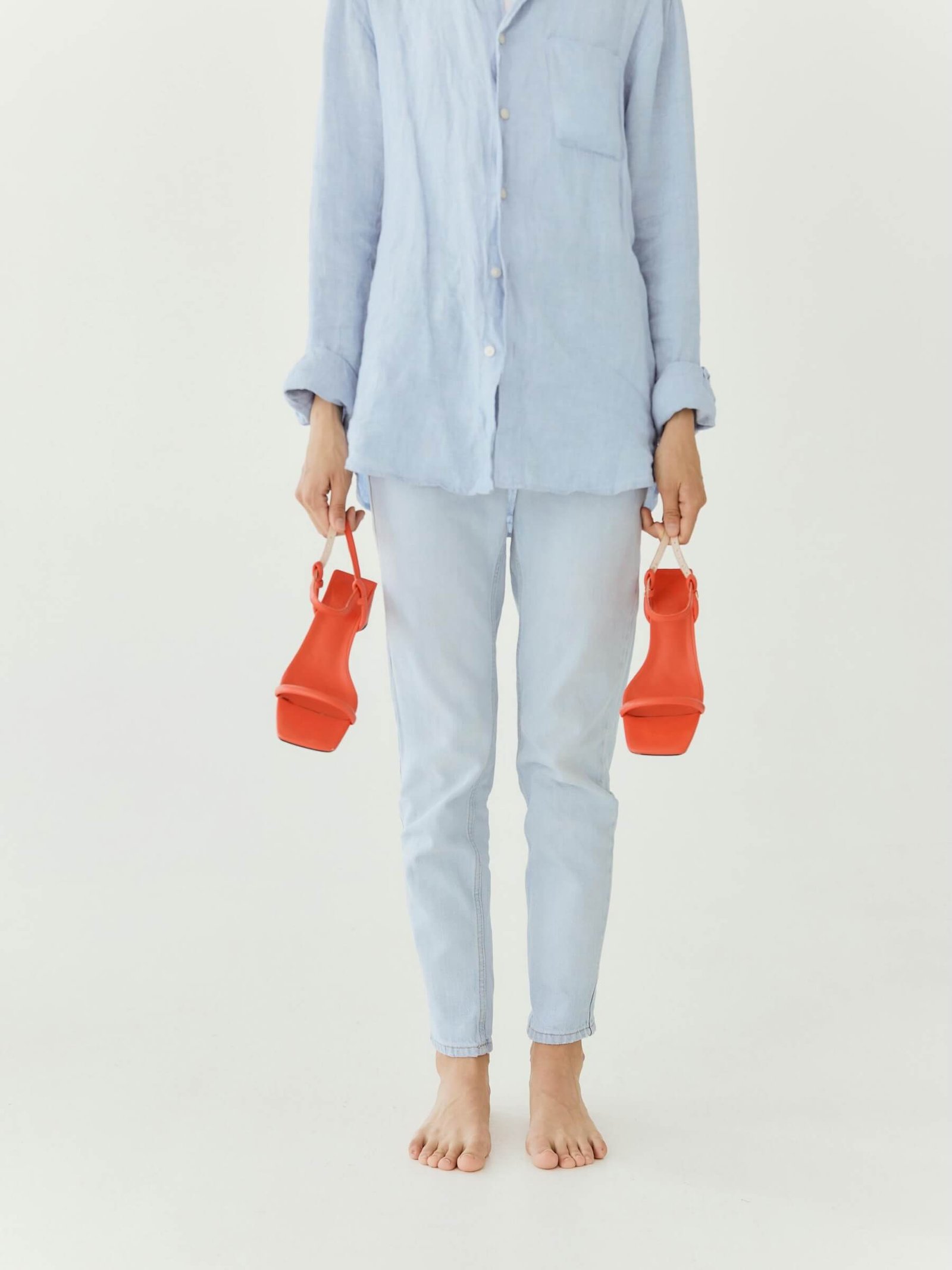 Leather. Slip on design. Front opening. No fastening. 8 cm heel.