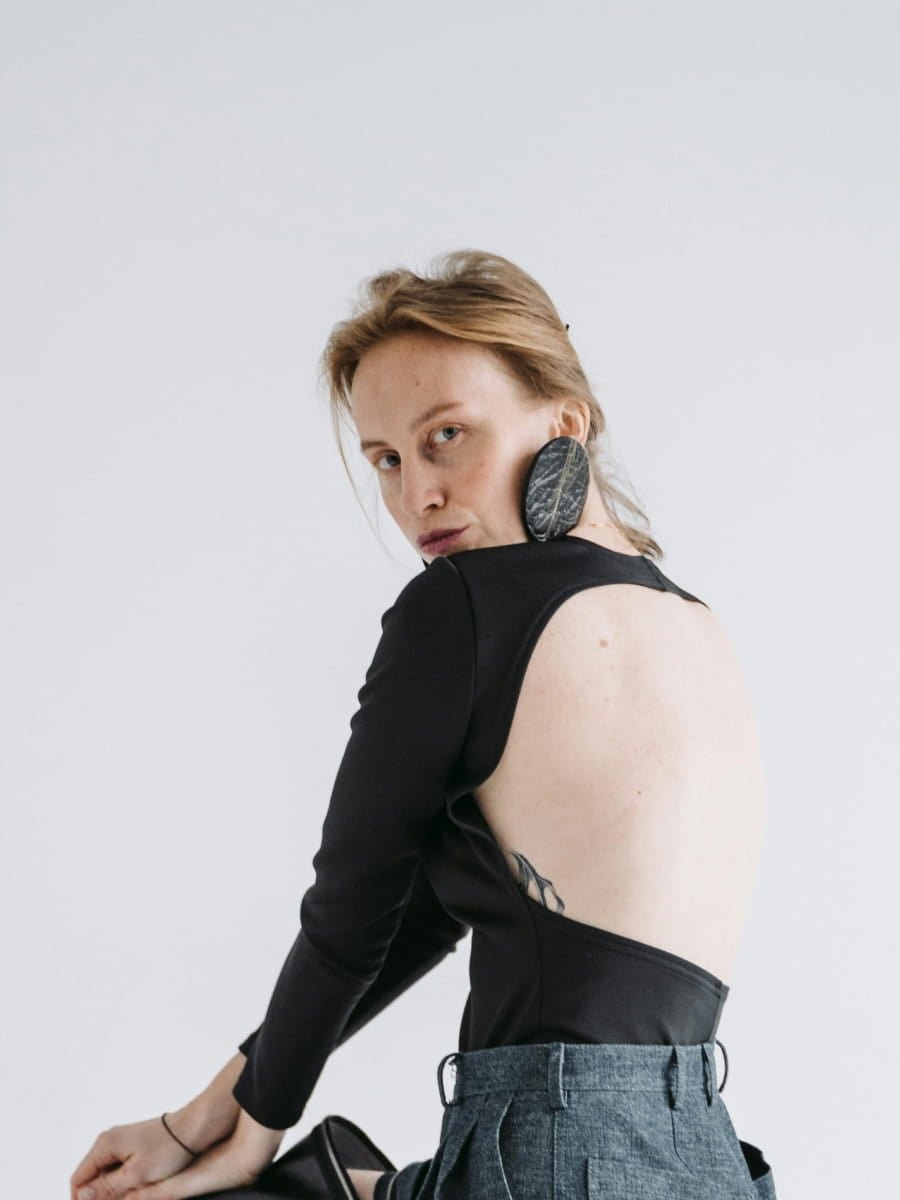 - Textured leather circle earrings